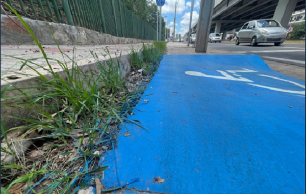 También, la “bicisenda” se encuentra abarrotada de columnas y señales que dificultan el tránsito, reportan desde ABC TV.