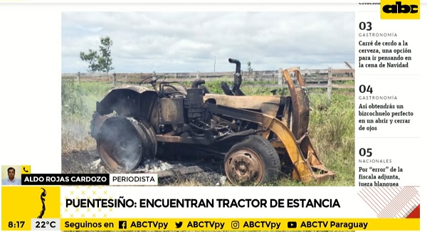 El agente fiscal René Zarate fiscal refirió a Cardinal 730 AM que el tractor fue hallado intacto este lunes y que se encontraba en el lugar donde el tractorista señaló que fue despojado.
