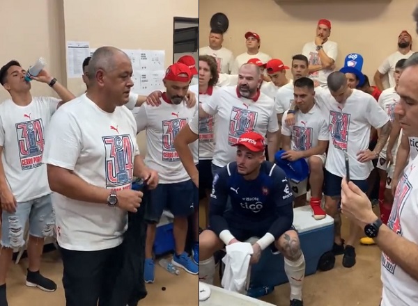 En un video compartido por Camilo Guanes, grabado en el vestuario del Ciclón, se puede ver a Arce dirigiéndose a los presentes.