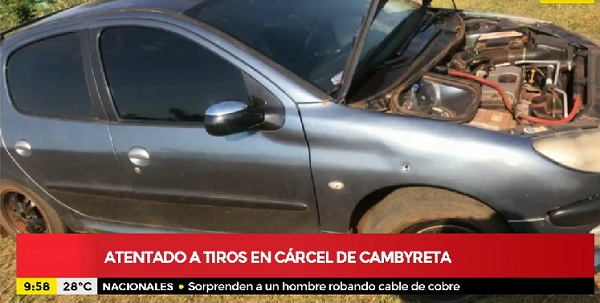 La víctima es un guardiacárcel identificado como Virgilio Cáceres, de 41 años, quien salió ileso del ataque a balazos perpetrado por sicarios encapuchados, quienes rociaron a tiros el automóvil del agente penitenciario.