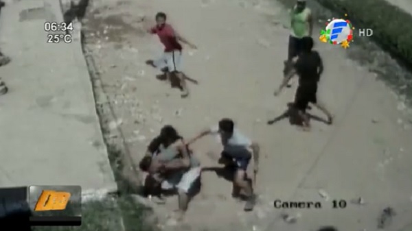 Ocurrió alrededor de la media mañana del 25 de diciembre. En las imágenes se puede observar que un hombre lanzó piedras al principio, pero luego con machete en mano se acercó, para dar inicio a la batalla campal.