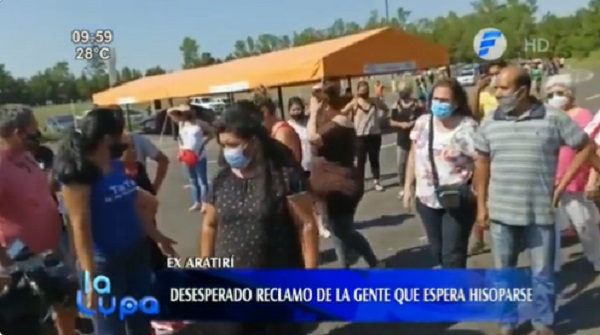 Numerosas personas, ya sea con vehículos o de forma peatonal, se encuentran aguardando por la atención en el “hisopódromo” del Rubén Dumot, ubicado en Capiatá, debido a que el personal de Salud, no cuenta con su sistema, por la falta de señal de internet, de acuerdo al reporte emitido en el programa La Lupa, de Telefuturo.