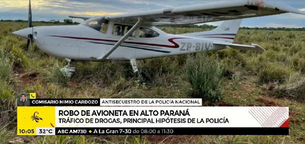 Tras su traslado hasta el lugar, la policía de Concepción, confirmó que se trata de la misma nave robada, cuya matrícula es ZP-BIV, de acuerdo con el reporte de ABC TV.