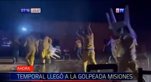 Los bomberos de la mencionada localidad en conjunto a otros dos cuerpos de voluntarios de San Juan Bautista, Misiones, acababan de apagar uno de los focos de incendio que se propagó rápidamente en la zona de la playa Camping Paraíso. Minutos después, fueron sorprendidos por la lluvia, a la que recibieron con mucha alegría.