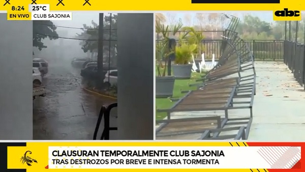 La gerente financiera, Victoria Cabezudo, reportó que varios alerones del Club Deportivo Sajonia se vieron afectados por el temporal, pero afortunadamente sólo dos socios, quienes se encontraban usufructuando el sitio, sufrieron accidentes leves.