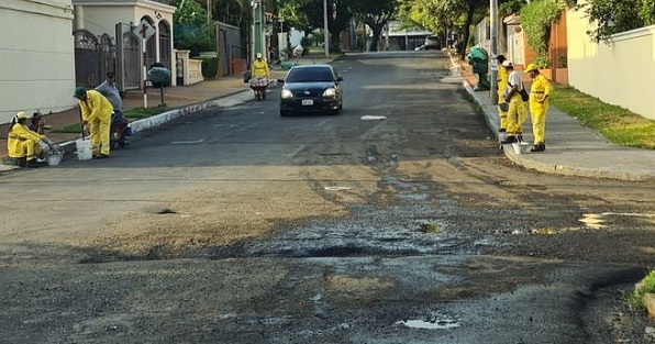 Esta situación provocó la indignación de personas que pasaron por el lugar, pues el municipio priorizó pintar las veredas, antes que arreglar las calles, informó ABC Color.
