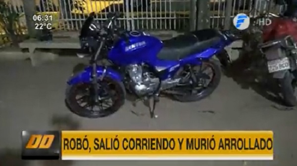 Un joven de 24 años de edad supuestamente robó carnes de un supermercado, salió corriendo y cuando intentaba huir una motocicleta lo arrolló y falleció en el sitio.