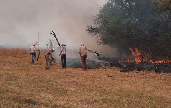 Dijo además, que el intendente Fermín Candía y un grupo de ciudadanos de Laureles, llegaron hasta el lugar para combatir sin treguas el incendio forestal que azota el distrito y que se reavivó tras un remolino de viento que alzó las cenizas que aún no se habían apagado del todo y generó un nuevo foco de incendio.