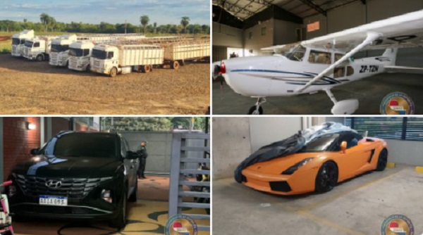 En total son 43 órdenes de captura que se deben dar cumplimiento en los más de 100 allanamientos que comprende la primera fase de este megaoperativo en el que también se tiene prevista la incautación de bienes patrimoniales valorados en más de USD 100 millones que comprenden, inmuebles lujosos, amplios depósitos logísticos, nueve establecimientos ganaderos y más de 6.000 cabezas de ganado, automóviles de alta gama, flotas de camiones y maquinarias agrícolas, un complejo deportivo, un hangar y 13 aeronaves.
