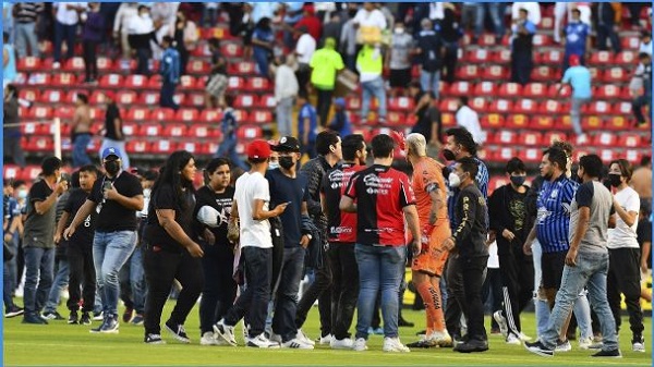 Tragedia en México, unos 17 muertos por una batalla entre las hinchadas de Querétaro y Atlas, trás un encuentro de la liga de fútbol local. Hay cuerpos de personas tiradas a los largo y ancho del estadio Corregidora producto de la violencia. pic.twitter.com/vSw3SrBvR1