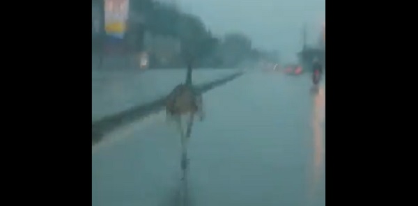 En medio del temporal registrado este miércoles, se vio a un avestruz corriendo sobre una transitada arteria.
