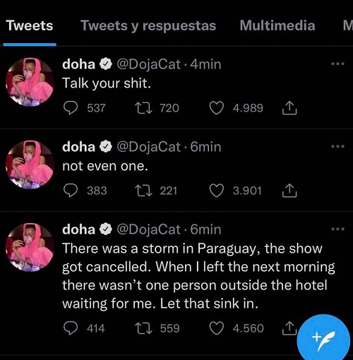 – Doja cat: “Afuera de mi hotel no había nadie esperando.”