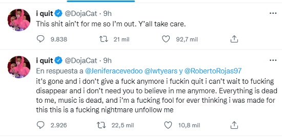 Más tarde, incluso dijo que se despedía de la música y lo siguiente: “Esta mierda no es para mí, así que me voy. Cuídense todos”.