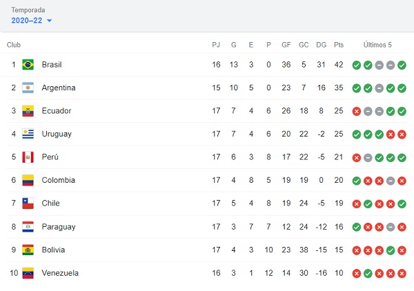 Con el 3-1, la Albirroja está en octava posición, con 16 puntos, mientras que Ecuador sigue tercero con 25 unidades, con la misma cantidad de puntos que Uruguay.