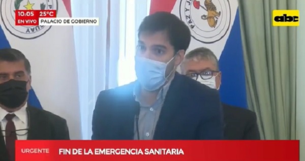 Por su parte, el jefe de Gabinete Civil, Hernán Huttemann, confirmó la derogación de ley de estado de emergencia sanitaria. “Los alcances como ustedes ya saben tiene que ver con la vigencia del uso obligatorio de mascarillas, que a partir de ahora quedaría sin efecto. Esto no obsta a que el Ministerio de Salud, siga recomendando a la población la utilización de mascarillas en determinados momentos”, indicó.