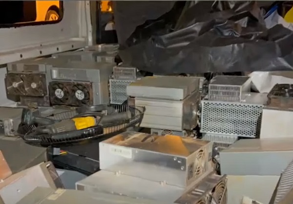 Finalmente metieron al lugar un furgón y cargaron las maquinas generadoras de bitcoins y escaparon del lugar.