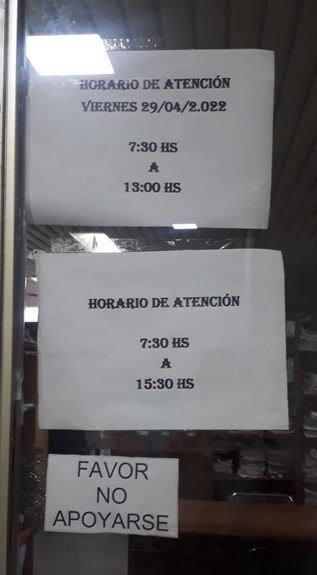 En una de las imágenes enviadas se puede ver un cartel que señala que este viernes solo trabajarían hasta las 13:30. La mujer confirmó a este medio que en otras dependencias de la Municipalidad le manifestaron que se estaba cumpliendo horario normal, es decir hasta las 16:00, como indica el portal web del ente.