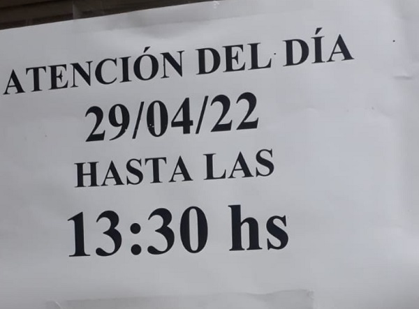 En una de las imágenes enviadas se puede ver un cartel que señala que este viernes solo trabajarían hasta las 13:30. La mujer confirmó a este medio que en otras dependencias de la Municipalidad le manifestaron que se estaba cumpliendo horario normal, es decir hasta las 16:00, como indica el portal web del ente.