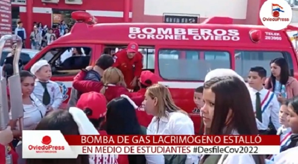 En medio de un desfile estudiantil realizado en la ciudad de Coronel Oviedo estalló una bomba de gas lacrimógeno.