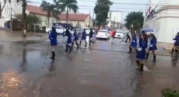 Frente a la copiosa lluvia en la ciudad de Pedro Juan Caballero, los estudiantes de instituciones educativas realizaron el desfile por las fiestas patrias.