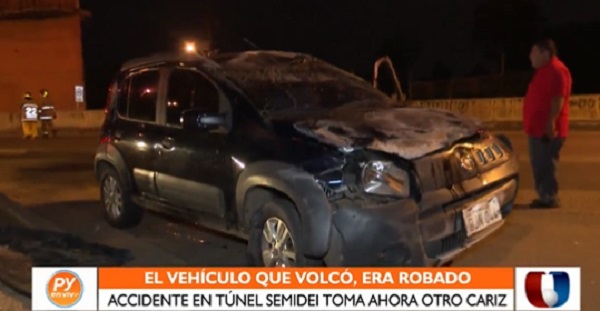 Un hombre a bordo de un vehículo marca Fiat, volcó el sábado en horas de la madrugada en el túnel Semidei, ubicado en el cruce de la ruta Transchaco en el Barrio Loma Pyta de Asunción.