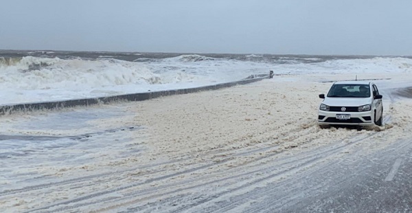 La espuma, como casi siempre en estos eventos meteorológicos dio un espectáculo aparte y fueron muchos los que llegaron hasta el lugar para filmar videos y sacar fotos, pese al corte de rutas debido a la crecida de la marea y que el agua tapó por completo la arena y llegó a la ruta.