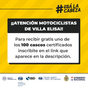 En caso de ser seleccionada la persona debe presentar el día de la entrega de casco las fotocopias simples de su cédula de identidad, de su licencia conducir de Villa Elisa y de la habilitación de su motocicleta correspondiente al municipio de Villa Elisa (todos los documentos deben estar al día).