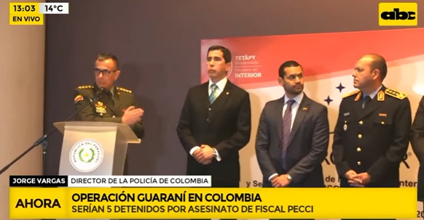 Más tarde, en conferencia de prensa, el ministro del Interior, Federico González, confirmó la detención de cinco personas por el crimen del fiscal Marcelo Pecci en Colombia a días de que se cumpla un mes del atentado que acabó con su vida.
