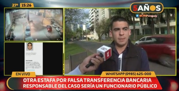 Luego, grande fue su sorpresa cuando el comprobante tenía el nombre de otra persona. Indicó que al percatarse de esto, inició sus propias investigaciones y llegaron hasta el hombre que fue enviado. Este sería funcionario de la Contraloría y viviría en la ciudad de Villa Elisa, su nombre es Marcos Fernando Alcaraz Alfonso.