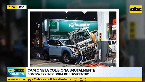 La camioneta colisionó de manera violenta contra una expendedora de combustible de una estación de servicio ubicada en la intersección de las calles Leopardi y 11 de setiembre, Fernando de la Mora, zona sur.