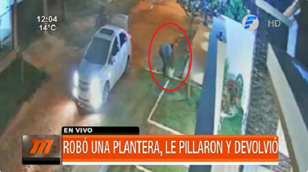 Gracias a imágenes del circuito cerrado, se pudo identificar a un joven que, en horas de la madrugada, observó una plantera que estaba como ornamentación en la vereda de una vivienda del barrio 12 de junio de Coronel Oviedo, la subió a su vehículo y se la llevó.