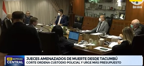 El pleno de la Corte Suprema de Justicia ordenó la custodia policial las 24 horas de dos jueces, uno de Asunción y otro de Amambay, por amenaza de muerte vía telefónica. Los mensajes llegan desde la penitenciaría de Tacumbú.