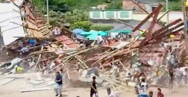 Las impresionantes imágenes captadas de la tragedia ocurrida el domingo en la plaza de toros, Gilberto Charry, ubicado en el municipio El Espinal de Tolima, Colombia, muestran el momento exacto del desplome de seis palcos. En el sitio se encontraban alrededor de dos mil personas que celebraban las fiestas regionales de San Pedro, de acuerdo al informe de Noticias Caracol.
