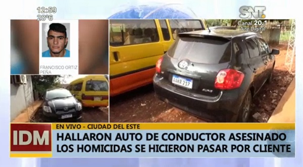 El automóvil de Francisco Ortiz Peña, de 22 años, quien se desempeñaba como conductor de las plataformas de Uber y Bolt y quien fue hallado muerto tras recibir varias puñaladas, fue abandonado en el barrio San Miguel de Ciudad del Este.