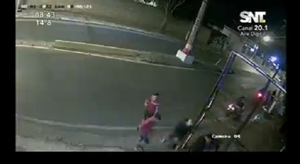 En las imágenes se observa que las víctimas estaban caminando sobre una calle en horas de la noche y que luego fueron sorprendidos por los malvivientes.