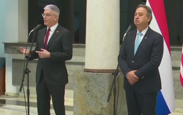 El diplomático brindó una conferencia de prensa, en conjunto con el Subsecreatio Mark Wells y ministro sustituto del Ministerio de Relaciones Exteriores, Raúl Silvero.