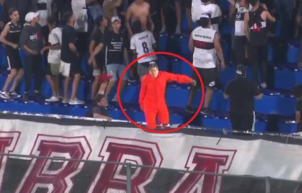 ♦️ Un hincha incluso se puso un mameluco naranja y máscara de Cartes.