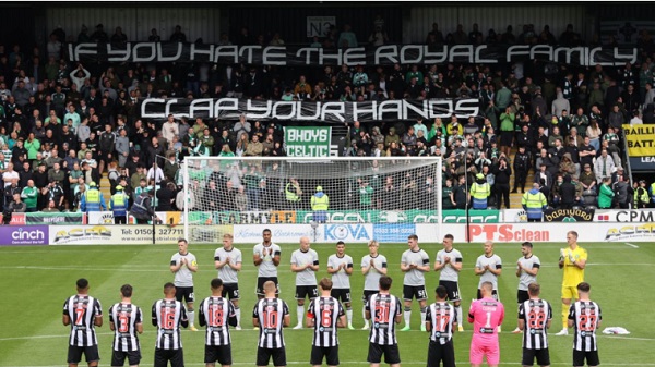 Sin embargo, la afición del Celtic desplegó una pancarta que decía “Si odias a la familia real, aplaude” y corearon las mismas palabras durante todo el homenaje previsto.