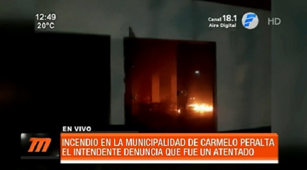 Incendio en la Municipalidad de Carmelo Peralta. El intendente denuncia que fue un atentado.