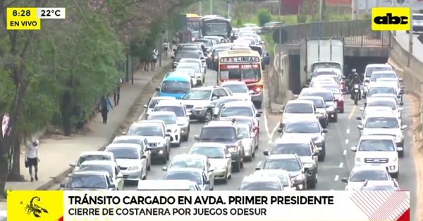 #TránsitoASU | Tránsito colapsado en Avda. Primer Presidente tras el cierre del acceso a la Costanera por los Juegos Odesur #ASU2022.#MóvilABC – @briancaceresv #ABCTVPy https://t.co/ZvwJlbwdHn pic.twitter.com/FIlBFDF4QR