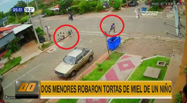 Un niño de 10 años fue víctima de robo por parte de otros dos menores de 11 y 12 años, respectivamente. Todo fue captado por cámaras de circuito cerrado de una vivienda del barrio San Francisco de Asunción, donde ocurrió el hecho.
