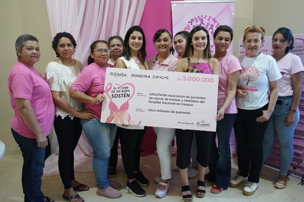 Finalmente, el miércoles 16 de noviembre, representantes de GIMSA se acercaron a la Fundación APACMAFA-HNI, “Asociación de pacientes con cáncer de mama y familiares del Hospital Nacional de Itauguá”, para realizar la donación de lo recaudado.