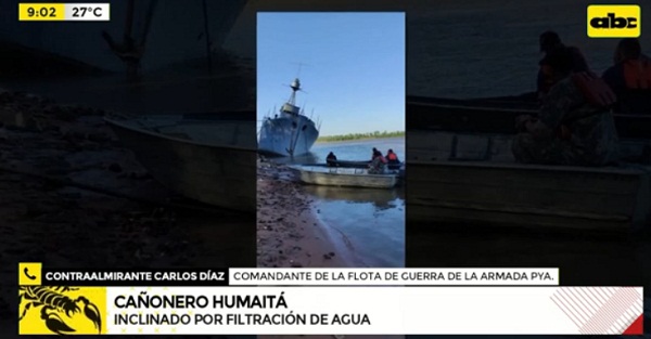 El contraalmirante Díaz explicó que el ingreso del agua que se dio inicialmente por una de las ventanillas en los niveles inferiores del barco a causa de un ventarrón que generó un oleaje inesperado en el río Paraguay el pasado sábado, ya fue contenido y la inclinación dejó de crecer.