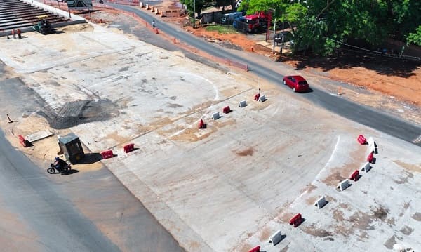 En la zona, ya se pueden observar los primeros delineamientos que darán lugar a la rotonda. Esta se ubicará al nivel de la avenida Acceso Sur, específicamente sobre la losa que cubre los 135 metros del túnel, a la altura de la intersección con las avenidas Américo Pico y Luis María Argaña (ex Avelino Martínez).