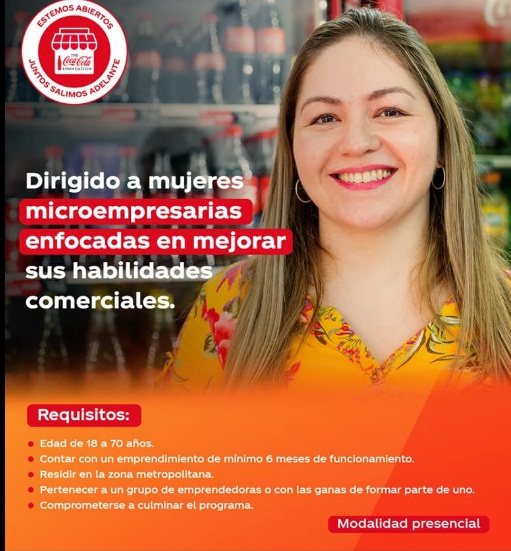 Mientras que los requisitos para la selección de las mujeres emprendedoras son los siguientes: edad de 18 a 70 años, contar con un emprendimiento de mínimo 6 meses de funcionamiento, residir en la zona metropolitana, formar parte de un grupo de mujeres emprendedoras o con la predisposición de formar parte de uno, comprometerse a culminar el programa.