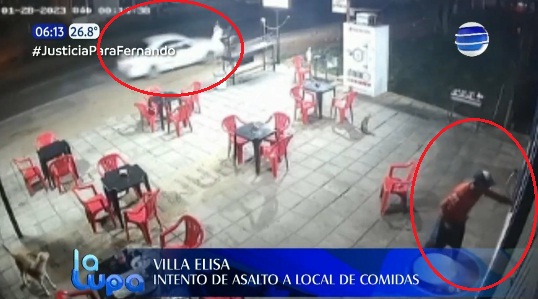 En imágenes de circuito cerrado se observa como dos hombres, que se desplazaban a bordo de una motocicleta, atacaron un local de venta de comidas en la ciudad de Villa Elisa.