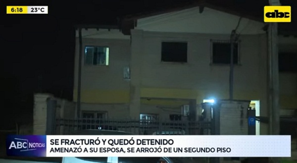 El hombre se lanzó del segundo piso de su vivienda al intentar huir luego de encerrar y amenazar a su esposa. Fue detenido por la policía.