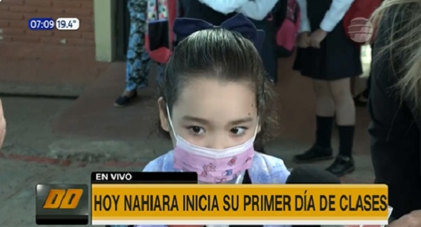 Este lunes, Nahiara Jazmín inició sus clases presenciales en la escuela Defensores del Chaco de Mariano Roque Alonso.