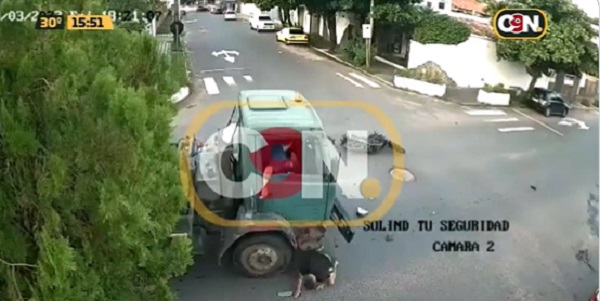 En la ciudad de San Lorenzo se registró un choque frontal entre dos motocicletas, donde uno de los conductores quedó bajo un camión.
