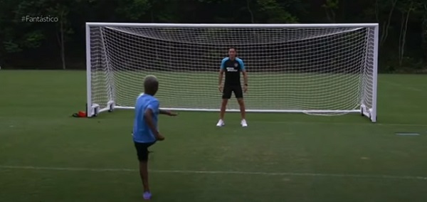El portero compatriota buscó contactar con el niño y gracias a la producción del programa Fantástico, de la Red Globo logró conocerlo y le obsequió, los tan ansiados botines.